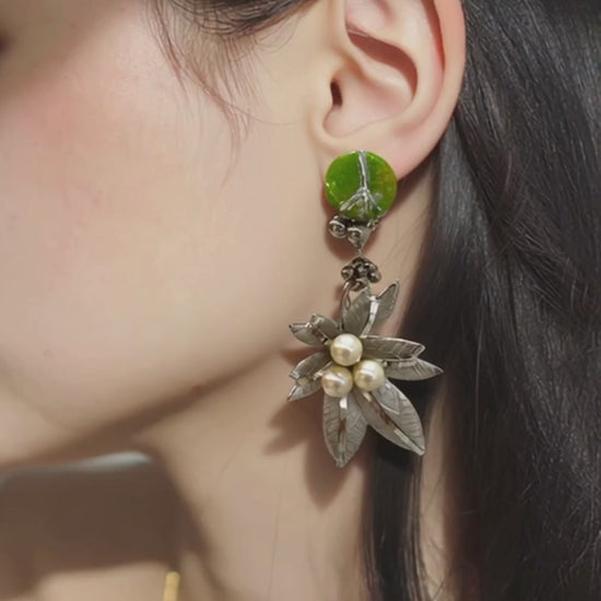 爽やかなグリーンのトップに、 印象的なフラワーモチーフをあしらって。